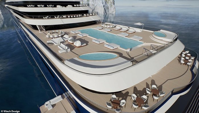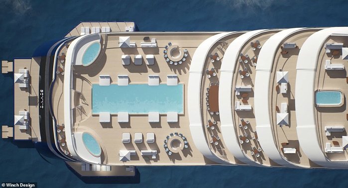 Les prix des appartements commencent à 9,5 millions d’euros. Un salon situé à l’avant du navire offrira des “vues spectaculaires” en mer.